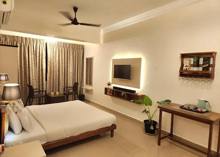 Vagator Beachside Studio Apartment is furnished with a work desk featuring air conditioning, as well as modern facilities like a TV with satellite channels. Beds fitted with down pillows are at guests' disposal. For your comfort, you will find a bidet, a walk-in shower, and a separate toilet at the property. A hairdryer and bath sheets can also be found.